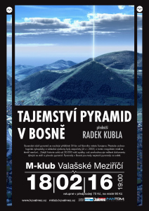M-klub ve Valašském Meziříčí zavede návštěvníky do tajů bosenského údolí, kde se podle archeologických výzkumů nachází magické pyramidy, jejichž historie sahá až 30 000 let zpět. O osobních zkušenostech a detailních informací zde totiž bude vyprávět Radek Kubla, a to ve čtvrtek 18. února od 19 hodin.
