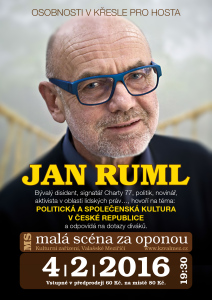 Čtvrtek 4. února zavítá do Valašského Meziříčí bývalý disident, signatář Charty 77, politik a novinář Jan Ruml. V pořadu Osobnosti v křesle pro hosta bude hovořit na téma Politická a společenská kultura v České republice a v průběhu večera bude také odpovídat na dotazy diváků. Druhým programem Malé scény bude ve čtvrtek 11. koncert skupiny GRUFF! z polského Krakova. Diváci se tak mohou těšit na nefalšované drsné a špinavé blues s neopakovatelným soundem v podání muzikantů Bartek Przytuła, Tomek Kruk a Maciek Kudła. Posledním únorovým programem provede ve čtvrtek 18. zpěvák Ivan Hlas se svým triem, který se do Valmezu vrací po vystoupení na Valašském Špalíčku 2014. Na kytaru jej doprovodí Norbi Kovács a na violoncello Jaroslav „Olin“ Nejezchleba. Vstupenky jsou již k dostání v předprodeji.