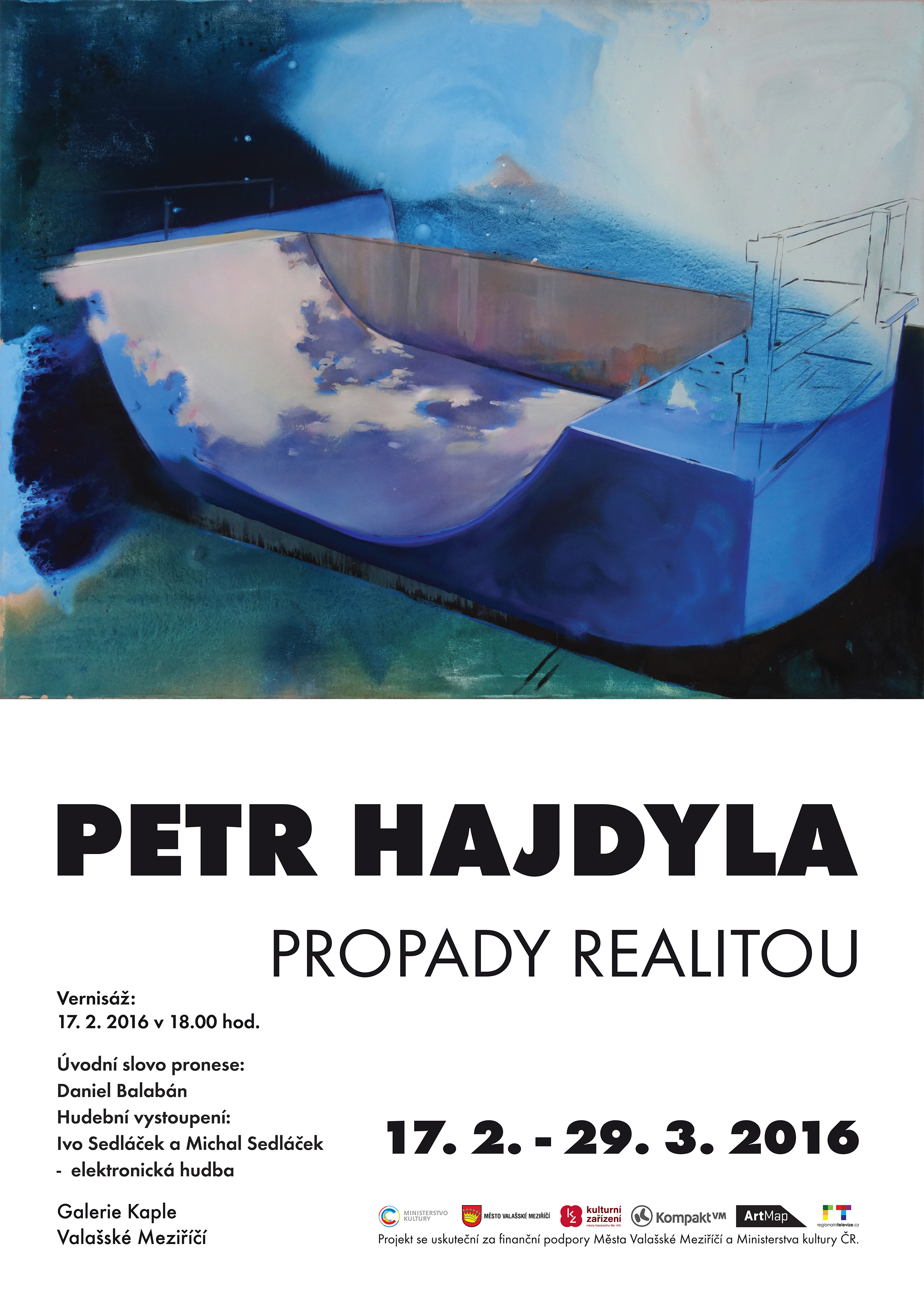 Galerie Kaple uvede výstavu malíře a grafika Petra Hajdyly, který ve Valašském Meziříčí vystavuje poprvé. Pod názvem Propady realitou se skrývají námětem neucelená díla vytvořená za poslední dva roky a budou k vidění i zbrusu nová díla vytvořená přímo pro tuto výstavu. Tematicky se jedná o určité fragmenty nabitých dojmů, zážitků a postřehů. Na vernisáži výstavy se úvodního slova ujme autorův profesor z vysoké školy, Daniel Balabán a o elektronické hudební vystoupení se postará Ivo Sedláček a Michal Sedláček. Vernisáž výstavy se uskuteční 17. února v 18.00 hodin a výstava potrvá do 29. března 2016.