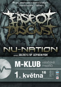V netradiční koncertní den, v neděli 1. května, dorazí do M-klubu ve Valašském Meziříčí duo ruských metalových kapel Ease Of Disgust a Nu-Nation. Jedná se o jeden ze dvou koncertů v České republice. O support se postará domácí uskupení Secrets of Separation. Začátek koncertu je ve 20 hodin.
