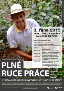 Plné ruce práce. Takový je název výstavy o kávě, kterou v sobotu 3. října hostí park u zámku Kinských ve Valašském Meziříčí. Stane se součástí více než čytřiceti míst po celé ČR, kde výstava ve stejný čas probíhá. Na patnácti plakátech se návštěvníci například dozvědí, co je to kojot nebo roya, jak vypadá kávovník či kávová zrna, jak se káva zpracovává a mnoho dalšího. Výstavový happening potrvá od 10 do 14 hodin.Autorem fotografií je Stanislav Komínek z organizace NaZemi, který navštívil pěstitele kávy v Guatemale a Mexiku. Zkoumal, jaké dopady na jejich životy má jejich zapojení do fairtradových družstev.