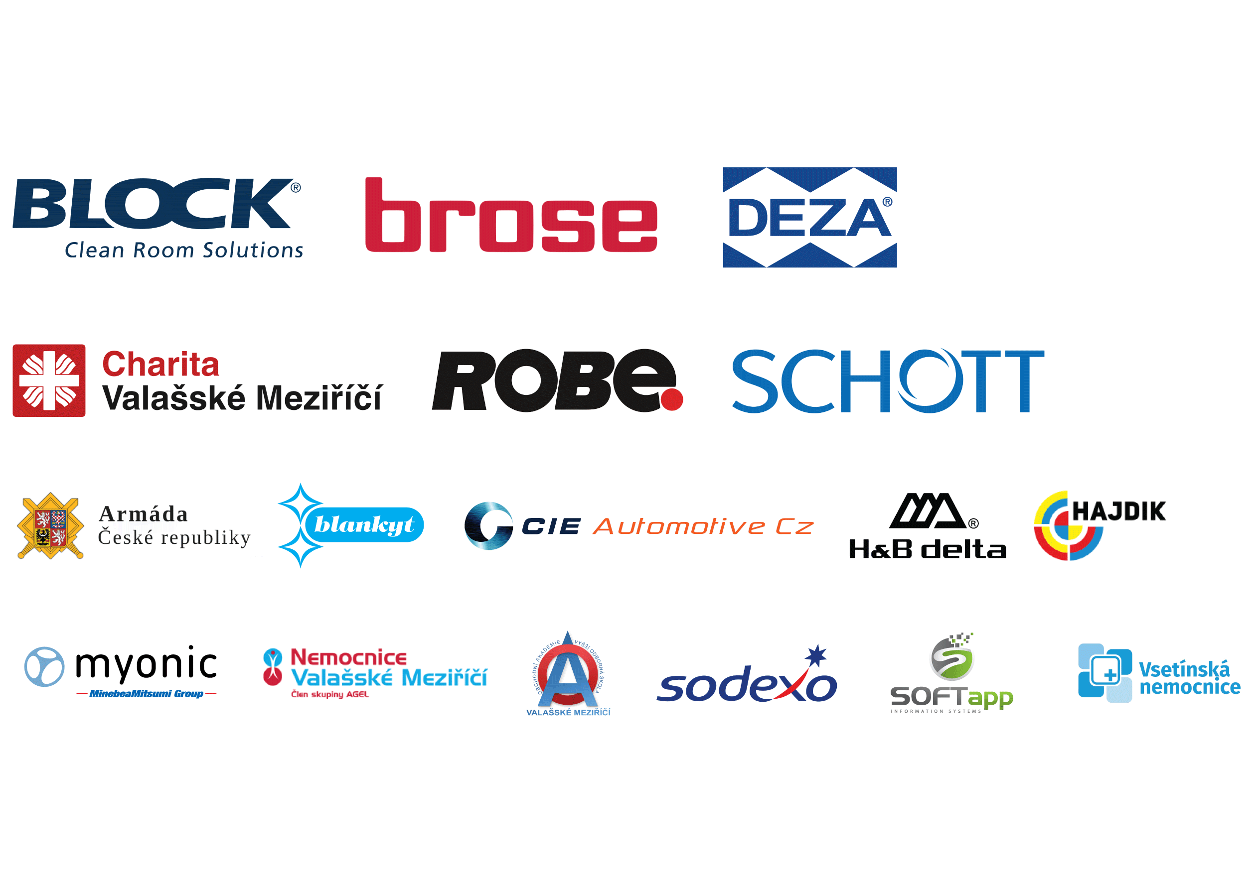 Armáda ČR, Blankyt Plus s.r.o., Block a.s., Brose CZ spol. s r.o., CIE Automotive, DEZA a.s., H&B Delta s.r.o., Hajdik a.s., Charita Valašské Meziříčí, Myonic, s.r.o., Nemocnice Valašské Meziříčí a.s., Obchodní akademie VM, ROBE Lighting s.r.o., SCHOTT CR s.r.o., SODEXO s.r.o., Softapp s.r.o.