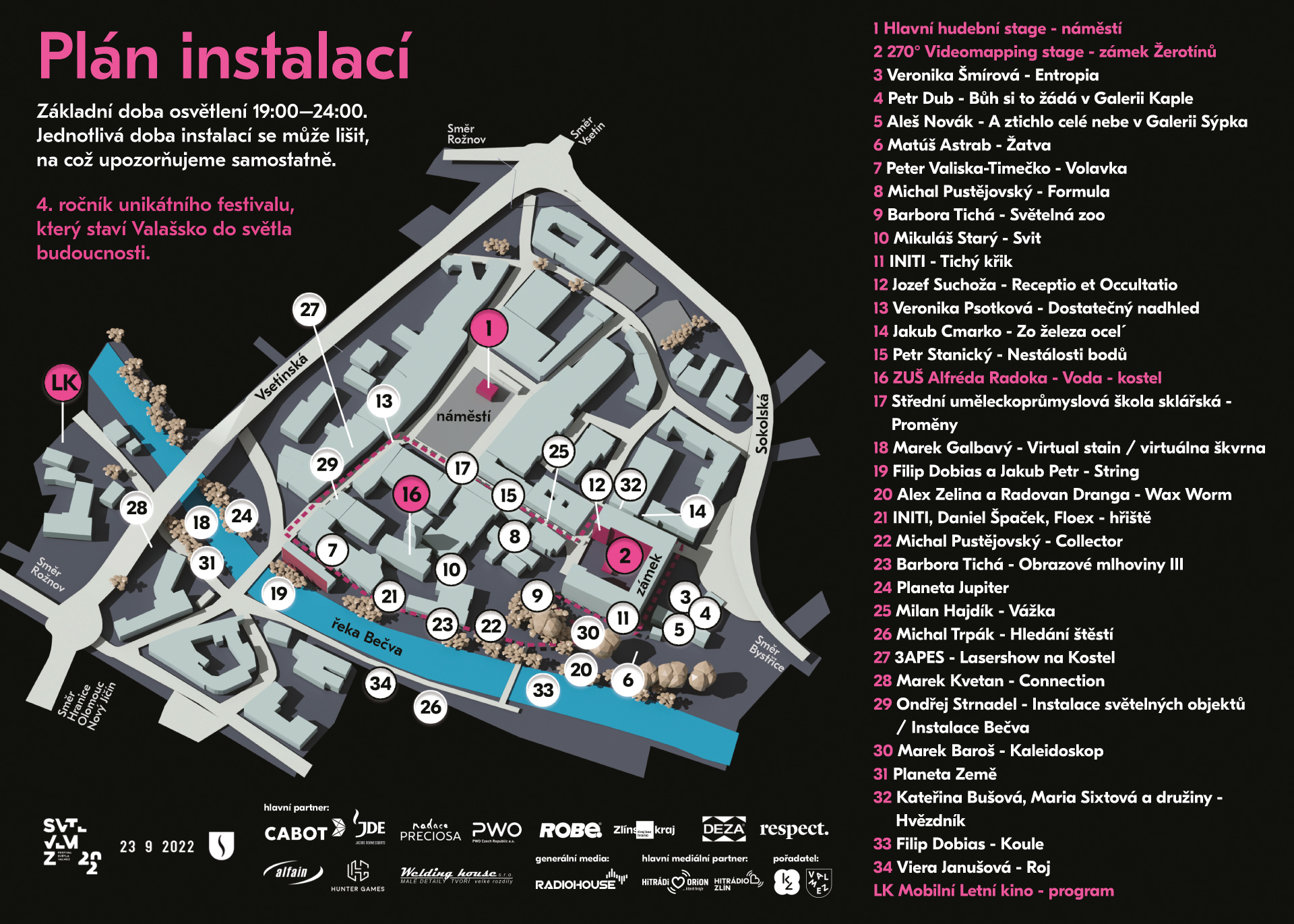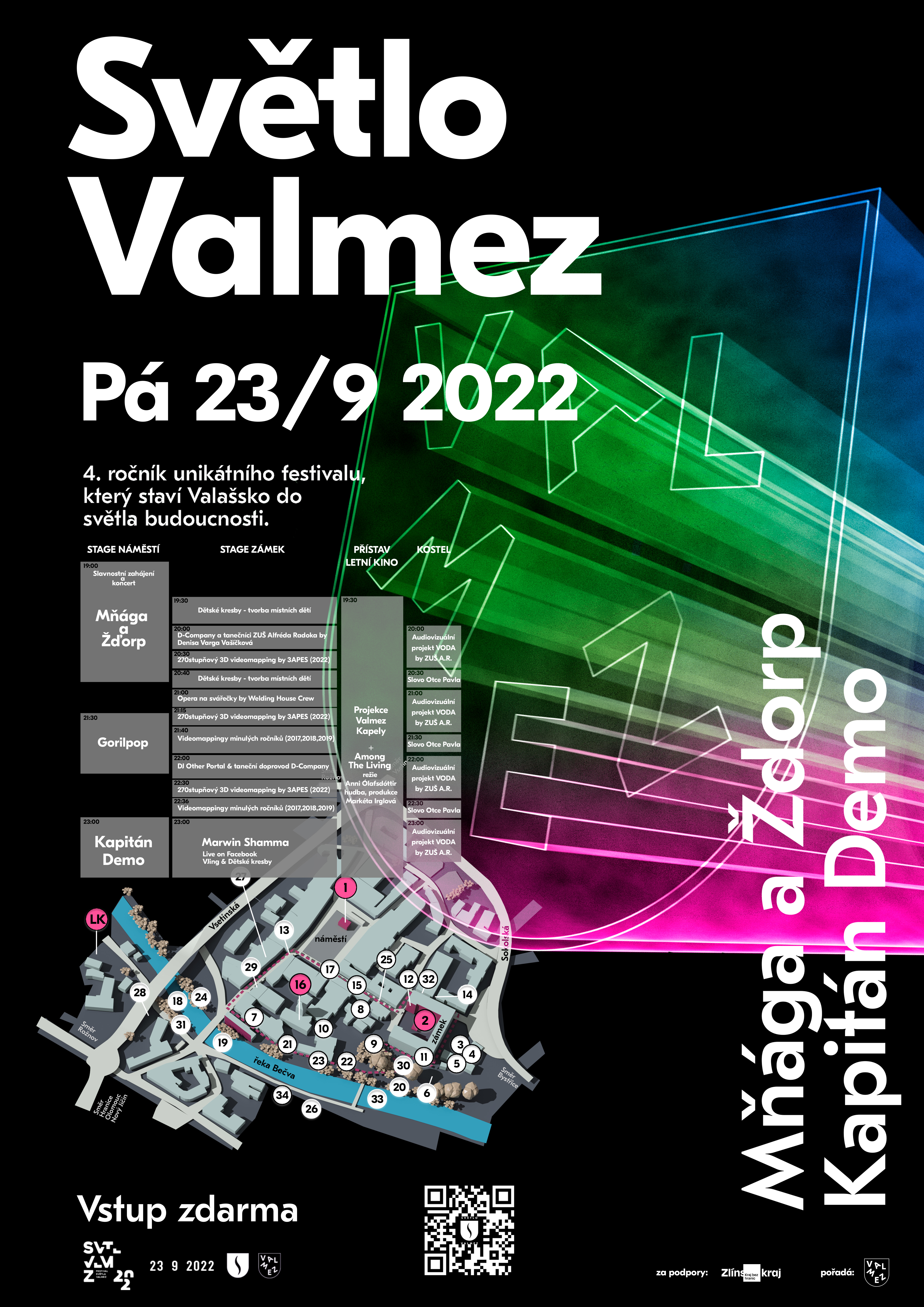 Dlouho očekávaný čtvrtý ročník festivalu, který staví Valašsko do světla budoucnosti, se vrací do centra Valašského Meziříčí. „Letos jsme připravili program pro celou rodinu, který nabídne unikátní propojení ojedinělých světelných instalací, hudebních vystoupení a tanečních představení. Festival zahájíme na našem krásném novém náměstí koncertem místní legendy – kapely Mňága a Žďorp, kterou vystřídá další valašskomeziříčská parta Gorilpop. Pomyslnou tečku za hudebními vystoupeními udělá populární Kapitán Demo se svou show,“ pozvala místostarostka Yvona Wojaczková.